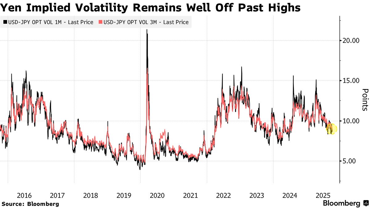 近几周来,套利交易收益颇丰,因外汇市场整体波动性维持低位。以日元融资的套利交易尤其赚钱。数据显示,卖出日元、买入哥伦比亚比索的交易者可获利超过5%,而另一种流行的融资货币瑞士法郎的收益则仅略高于3%。美元兑日元一个月隐含波动率已从年内高点下跌逾40%,并在9月触及逾12个月最低水平。