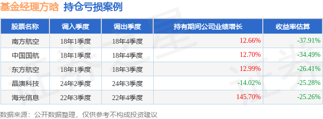 重仓股调仓示例详解: 1、隆基股份(601012)调仓案例: 方晗管理的嘉实惠泽LOF基金在20年2季度买入隆基股份,在持有1个季度后在20年3季度卖出。持有期间的估算收益率为93.05%,持有期间隆基股份在2019年到2020年的年报营业总收入增幅达65.92%。 2、东方财富(300059)调仓案例: 方晗管理的嘉实惠泽LOF基金在20年2季度买入东方财富,在持有1个季度后在20年3季度卖出。持有期间的估算收益率为65.08%,持有期间东方财富在2019年到2020年的年报归属净利润增幅达160.91%。 3、南方航空(600029)调仓案例: 方晗管理的嘉实主题混合基金在18年1季度买入南方航空,在持有3个季度后在18年4季度卖出。持有期间的估算收益率为-37.91%,持有期间南方航空在2017年到2018年的年报营业总收入增幅达12.66%。