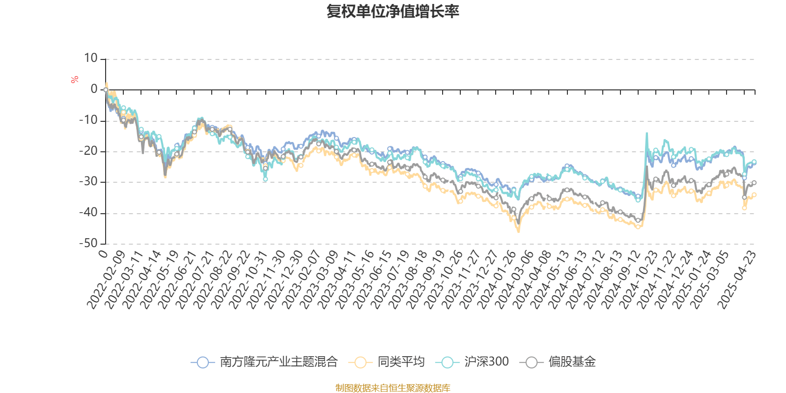 截至4月23日,南方隆元产业主题混合近三个月复权单位净值增长率为-0.44%,位于同类可比基金173/256;近半年复权单位净值增长率为-2.21%,位于同类可比基金129/256;近一年复权单位净值增长率为7.25%,位于同类可比基金136/256;近三年复权单位净值增长率为-2.06%,位于同类可比基金76/236。