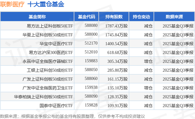 根据2025基金Q3季报公募基金重仓股数据,重仓该股的公募基金共135家,其中持有数量最多的公募基金为易方达基金的易方达上证科创板50ETF。易方达上证科创板50ETF目前规模为767.61亿元,最新净值1.3705(12月31日),较上一交易日下跌1.15%,近一年上涨36.63%。该公募基金现任基金经理为林伟斌 成曦。林伟斌在任的基金产品包括:易方达中证红利ETF,管理时间为2019年11月26日至今,期间收益率为77.39%;易方达中证红利ETF联接发起式A,管理时间为2020年7月8日至今,期间收益率为52.13%;易方达上证科创50联接A,管理时间为2021年3月1日至今,期间收益率为3.84%。成曦在任的基金产品包括:易方达创业板ETF联接A,管理时间为2016年5月7日至今,期间收益率为53.26%;易方达深证100ETF,管理时间为2016年5月7日至今,期间收益率为84.1%;易方达创业板ETF,管理时间为2016年5月7日至今,期间收益率为57.05%;