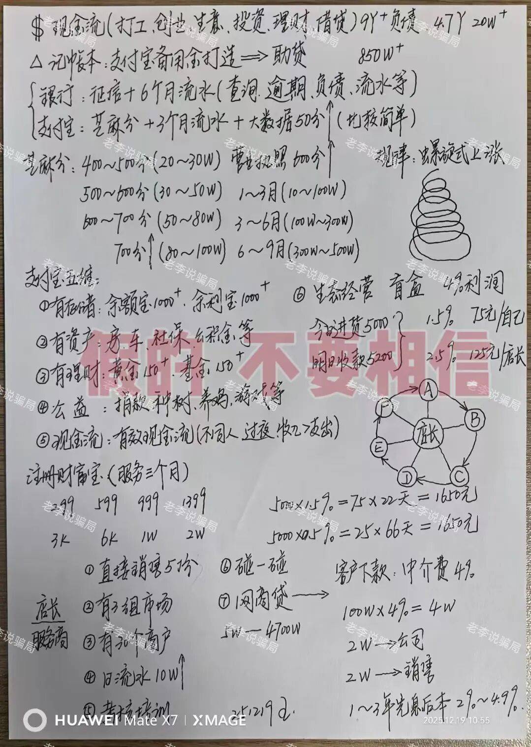这个项目打着“支付宝助贷”“打造备用金”的旗号,让参与者先交299元到2万元不等的费用成为“商户”,每天在固定时间转账制造虚假资金流水,宣称这样能提升芝麻分和信贷额度。