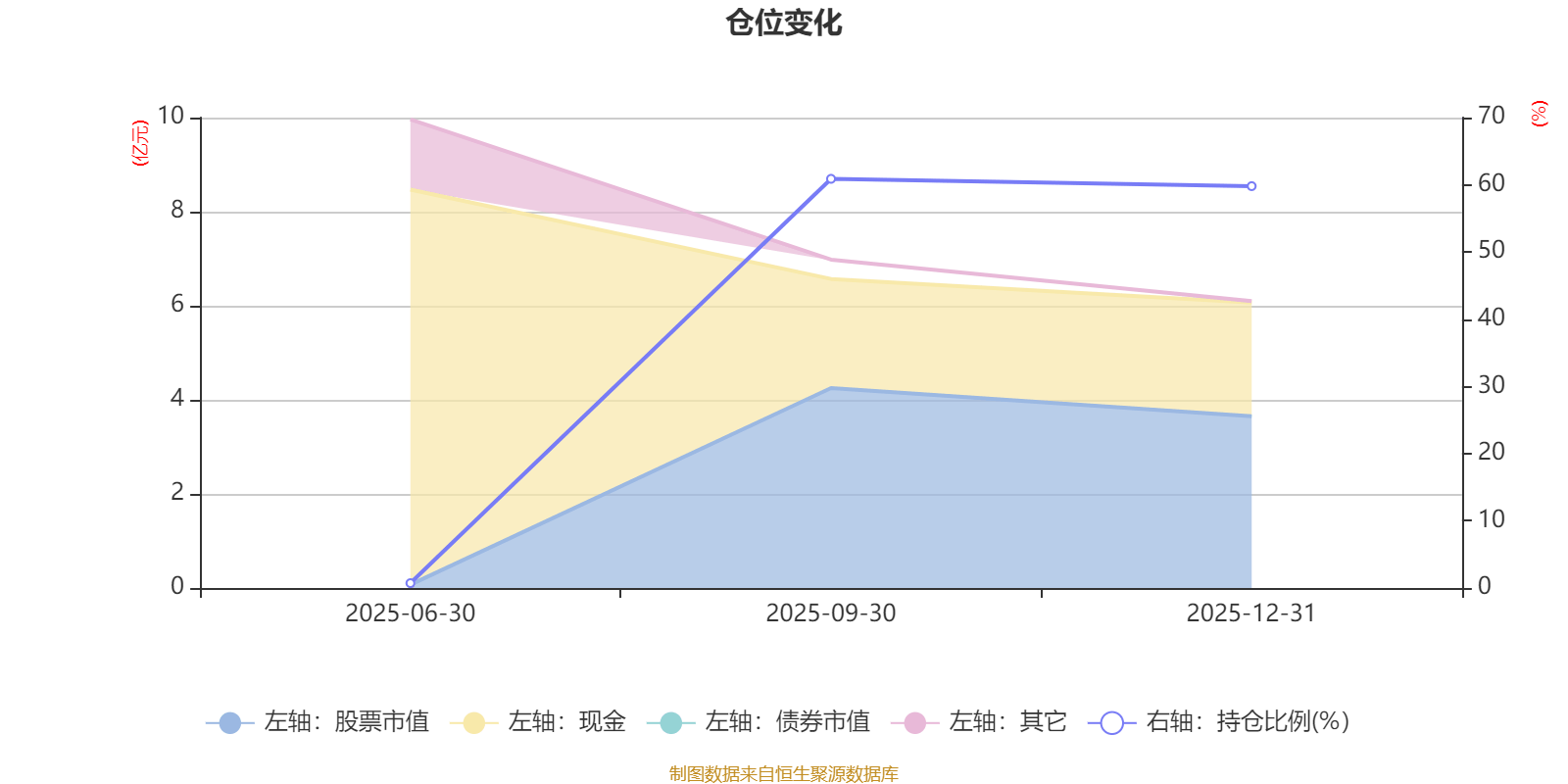 据定期报告数据统计,成立以来平均股票仓位为40.47%,同类平均为86.7%。2025年三季度末基金达到60.89%的最高仓位,2025年上半年末最低,为0.72%。