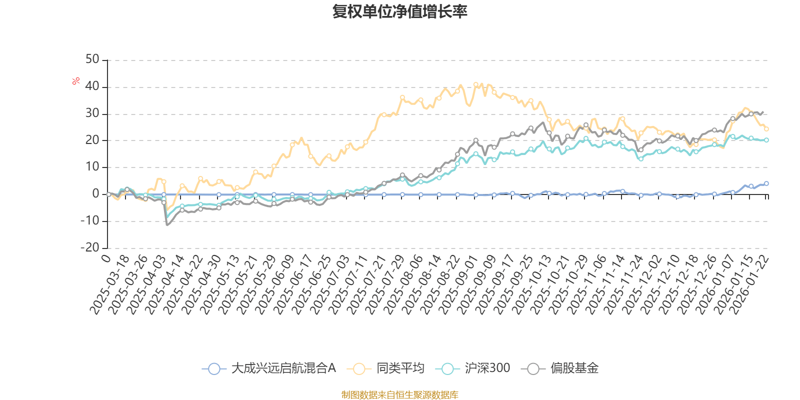 截至1月22日,大成兴远启航混合A近三个月复权单位净值增长率为4.16%,位于同类可比基金17/106;近半年复权单位净值增长率为4.12%,位于同类可比基金28/106。