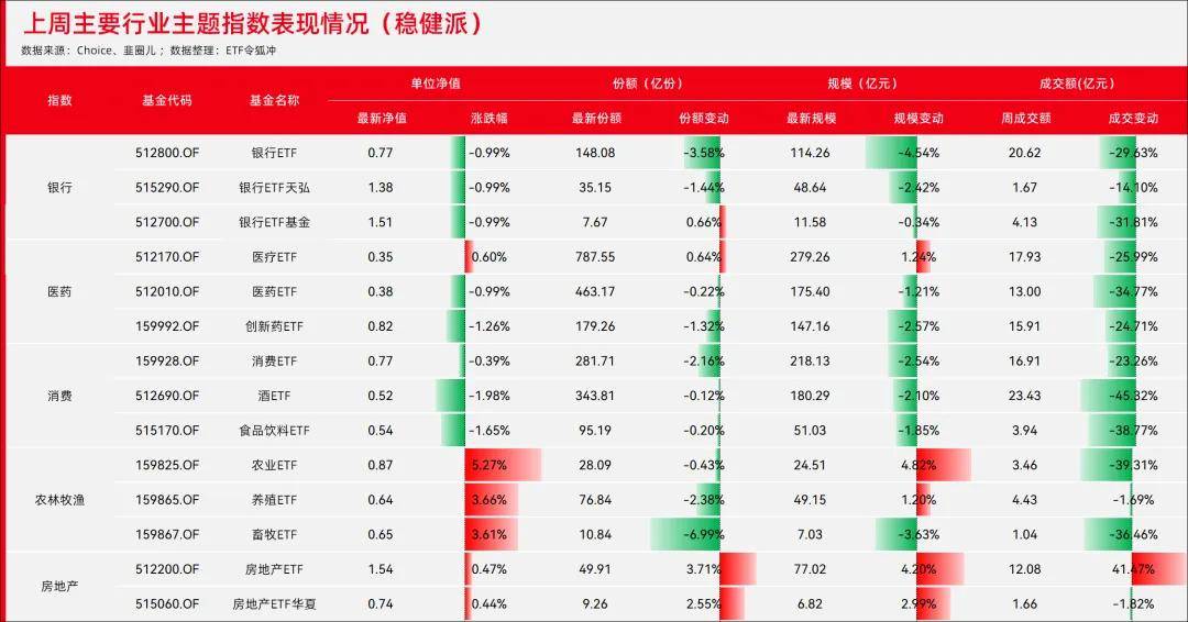 近期,上海放宽房地产相关政策的“沪七条”刷屏了朋友圈,该政策降低了非沪籍居民购房门槛,提升住房公积金额度,受利好影响,上周房地产板块基金上涨,相关ETF份额和规模都明显扩大,有资金进入房地产板块博取底部反转的机会,上周房地产ETF和房地产ETF华夏规模与份额均上涨。