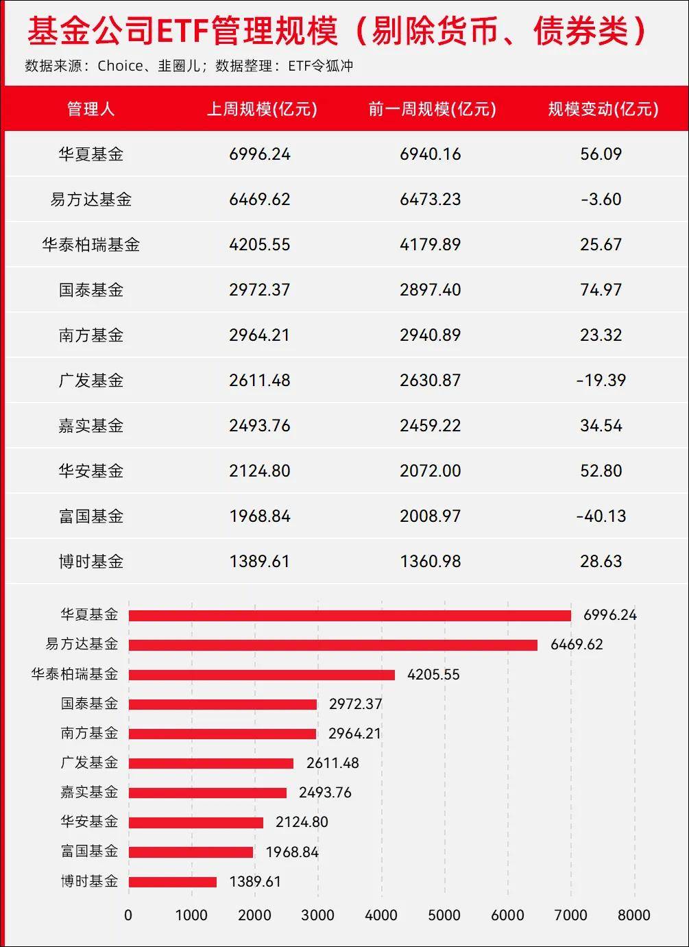 上周排名前十位的基金公司ETF管理规模涨多跌少,在经历了一月中旬到二月初的大规模份额缩水后,近期的ETF市场规模重新恢复上涨势头。