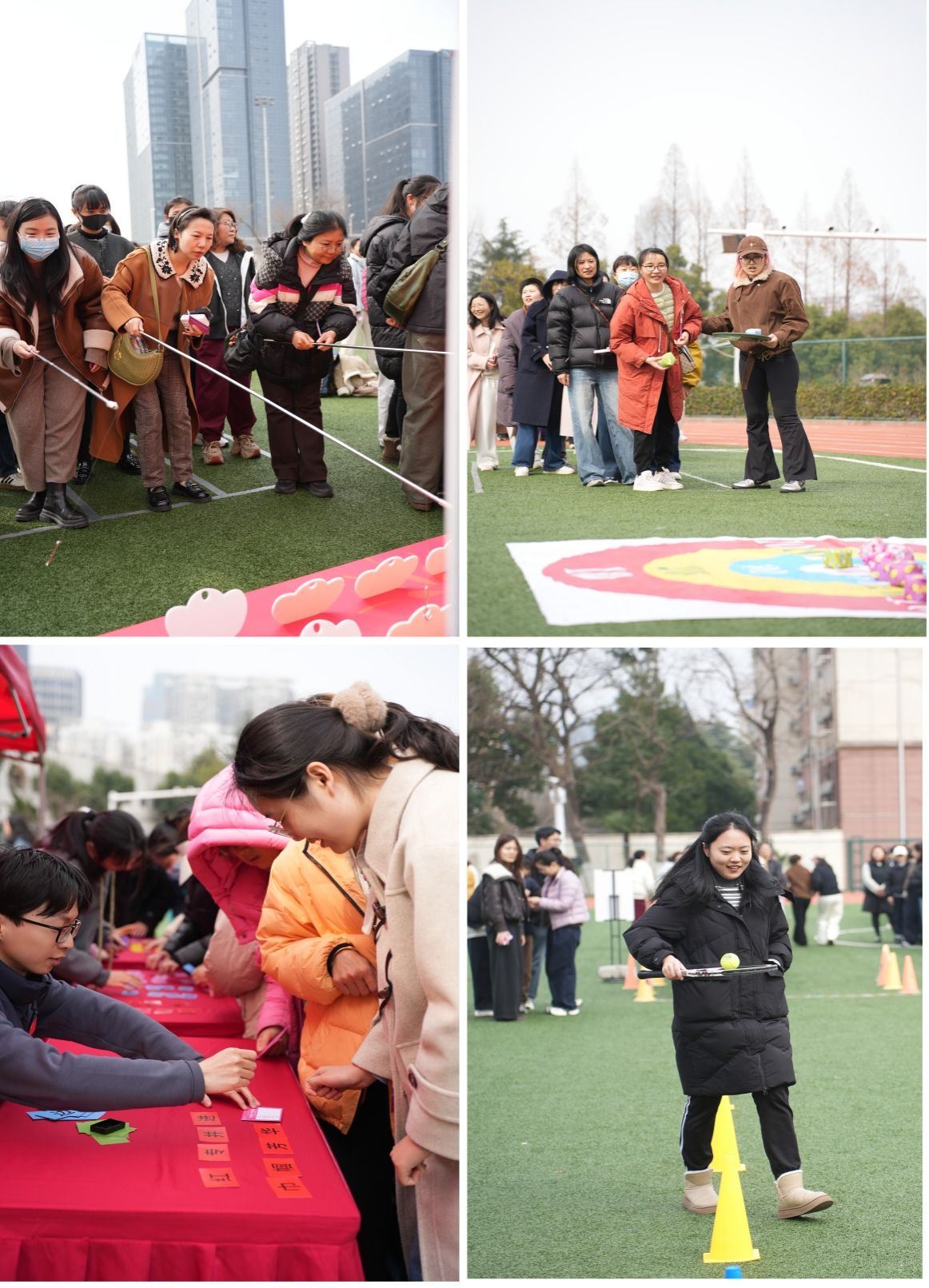 趣味运动会现场氛围热烈、欢声笑语不断,活动设置“障碍穿越、精准投掷、妙语连珠、巧手钓福”四个项目。女教职工们踊跃参与,在轻松的氛围中释放压力、增进交流,充分展现出积极向上的精神风貌。