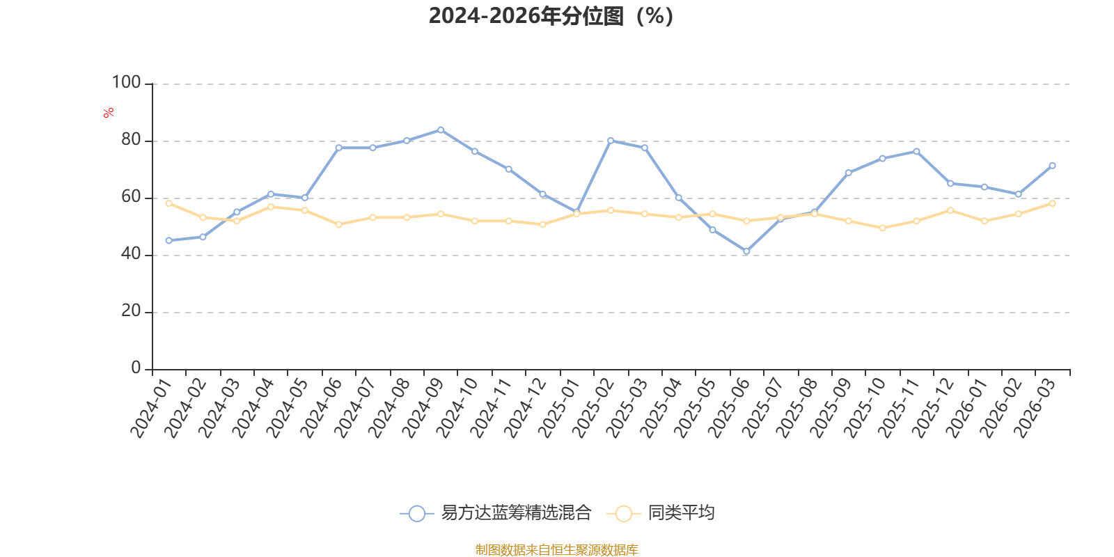 通过所选区间该基金净值增长率分位图,可以观察该基金与同类基金业绩比较情况。图为坐标原点到区间内某时点的净值增长率在同类基金中的分位数。