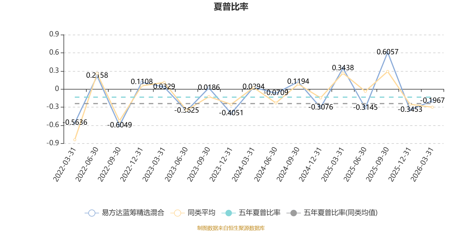 截至3月31日,基金近三年夏普比率为0.0803,位于同类可比基金21/75。