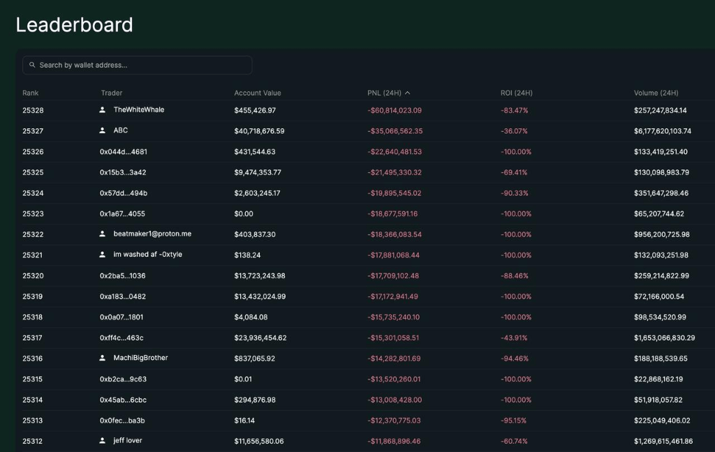 据社交媒体账户@LookOnChain披露,在这次市场中,Hyperliquid上有超过1000个钱包被完全清空,另有超过6300个钱包处于亏损状态,合计损失超过12.3亿美元。