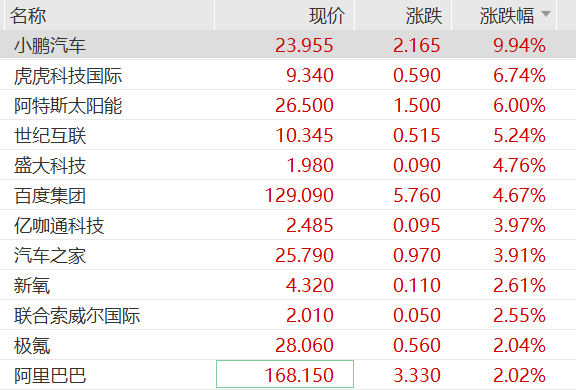 中概股逆势飘红,纳斯达克中国金龙指数高开,截至发稿涨幅扩大至1.46%。小鹏汽车涨超近10%,其近日发布的人形机器人引发市场广泛热议。阿特斯太阳能涨6%,世纪互联涨超5%,百度涨超4%,阿里巴巴涨超2%。