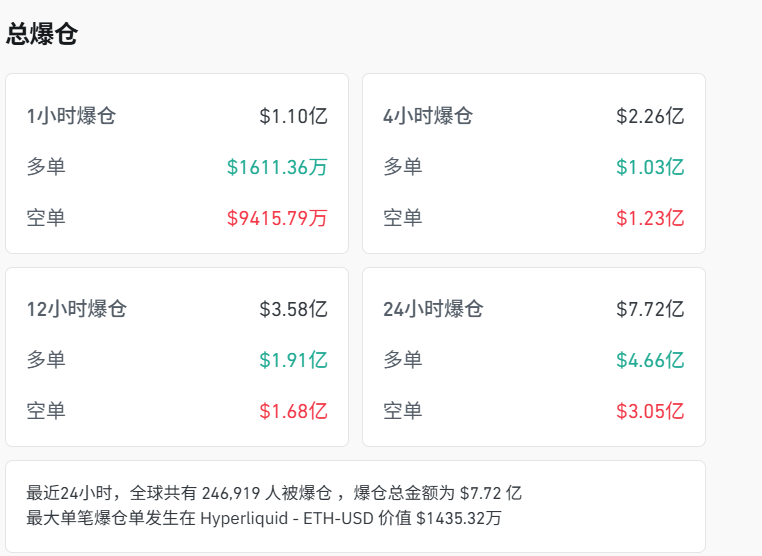 另外,加密货币市场也遭遇猛烈抛售,截至发稿比特币大跌超2%,跌破10万美元大关;以太坊大跌近4%,XRP大跌超4%。据Coinglass数据,最近24小时,全球共有超24万人被爆仓,爆仓总金额为7.72亿美元。