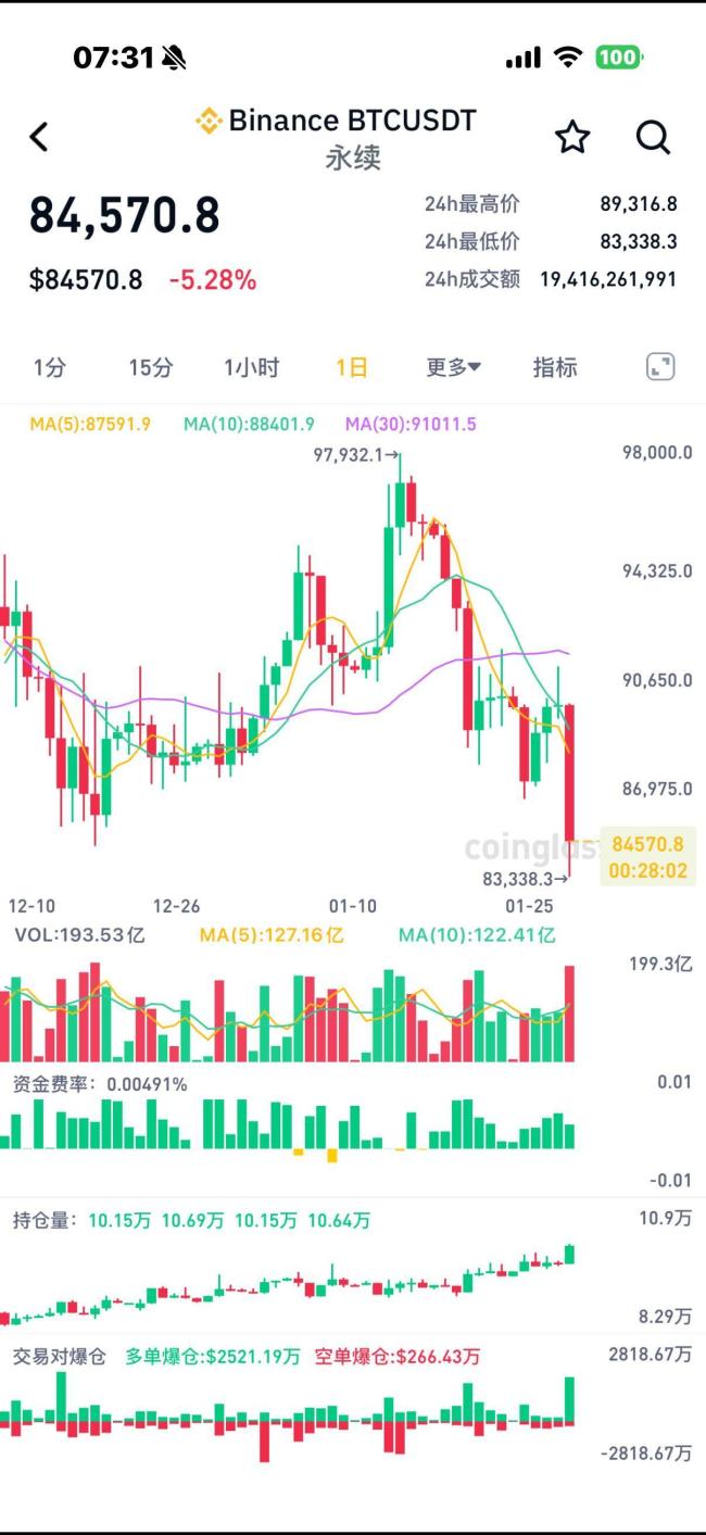 2026-02-01交易所,交易所排名,交易所排行,加密货币是什么,加密货币交易平台,加密货币平台,币安交易所,火币交易所,欧意交易所,Bybit,Coinbase,Bitget,Kraken,全球交易所排名,交易所排行1月30日凌晨,加密货币市场经历了一次大规模抛售,全板块集体跳水。截至当天7:30,比特币跌幅超过5%,跌破85000美元关口,报84645美元/枚;以太坊、SOL、狗狗币跌超6%,艾达币、FIL跌近7%,XRP跌近6%,整个市场一片惨烈。
