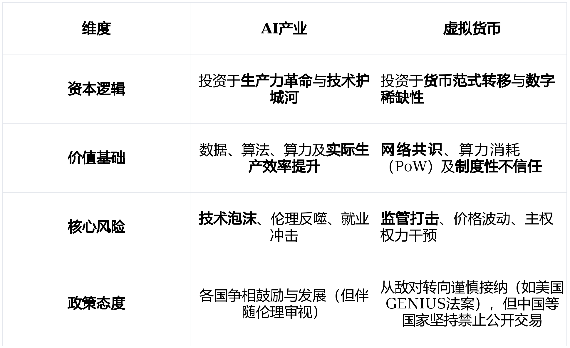 在低增长、高债务的宏观背景下,资本正在AI与虚拟货币这两个新大陆间疯狂摆动。