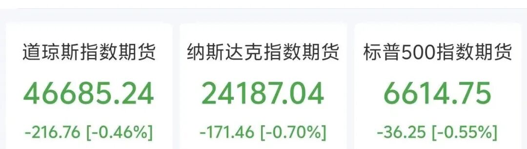美股盘前三大股指期货 短线走低并转跌 ,道琼斯指数期货跌0.46%,纳斯达克指数期货跌0.7%,标普500指数期货跌0.55%。此前 市场对美伊协议达成的乐观情绪升温,三大指数期货一度直线拉升翻红。